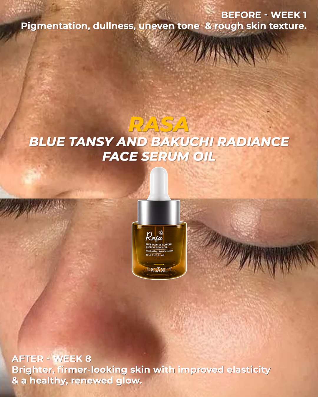 What else should I use before and after applying this face serum?Cleanse and tone skin thoroughly before use. Take a few drops of Rasa serum and massage gently in upward motion all over the face and neck day and night. Lock in the moisture of Rasa serum with an SPF cream during the day and a night moisturiser for an added burst of hydration and illumination.